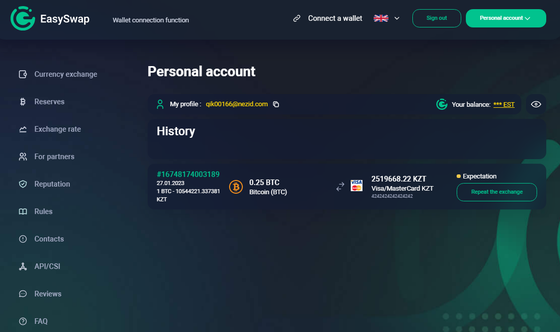 • Subsequent checks can be paid with internal bonus EST tokens, which you automatically receive for each exchange on EasySwap as cashback.